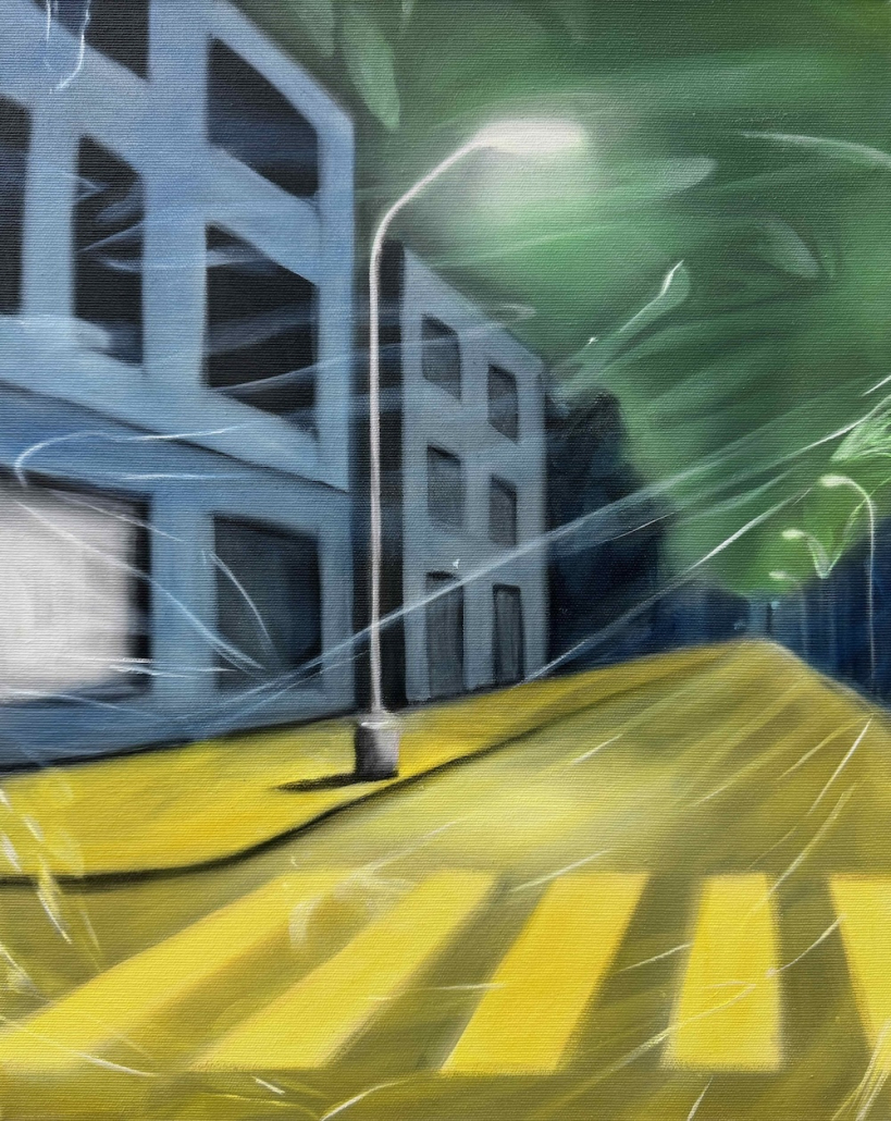 The challenge of this series is to painterly translate the visible into the invisible. The overlap of the visible is central to the spatial process. In a dialogue with materiality, Angela Wichmann plays with the contrast between foreground and background. The transparent, almost tangible film functions as an ambivalent membrane: it promises protection while simultaneously creating uncertainty by shifting and obscuring perception. The background is in tension with this barrier, destabilizing familiar spatial concepts. Perception is not confirmed here, but questioned – a visual field in which certainties become fragile and meaning is constantly reformed.
